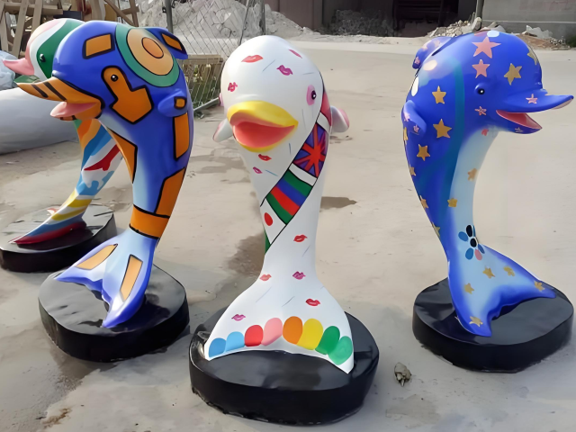 在蓝色广场中央,一尊高达三米的卡通彩绘海豚雕塑跃然眼前——它并非真实,却比真实更富生命力;它静止不动,却仿佛随时会冲破材料的束缚,溅起一片欢乐的浪花。这尊雕塑,正是玻璃钢材质与艺术创意完美结合的产物,展现了现代雕塑定制的无限可能。