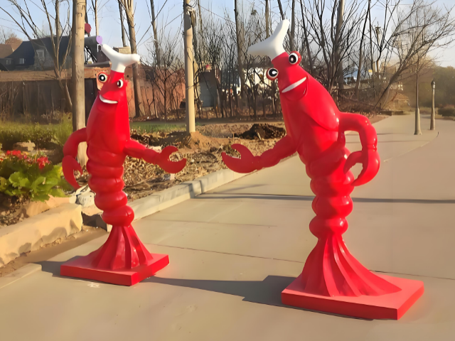 更为重要的是,玻璃钢的 “无限可塑性” 为设计师的奇思妙想提供了广阔的发挥空间。从龙虾甲壳的质感肌理到细长触须的动感曲线,从写实风格的自然姿态到卡通形象的夸张表情,玻璃钢都能以圆雕工艺精准呈现,使雕塑既有良好的整体性,又不失精雕细琢的细节之美。